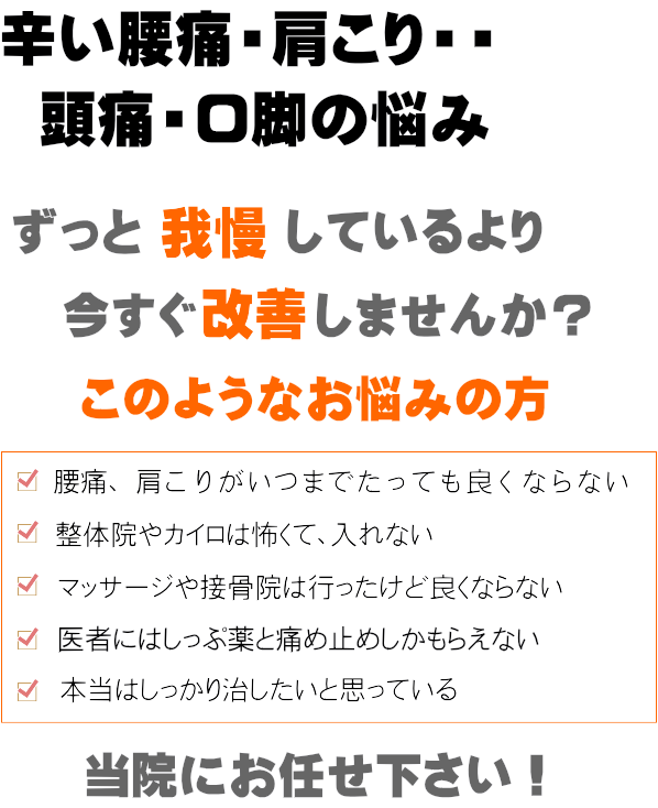 ◇たっぷりの施術時間、良心的な施術費でお客様のつらさや痛みを解消いたします。